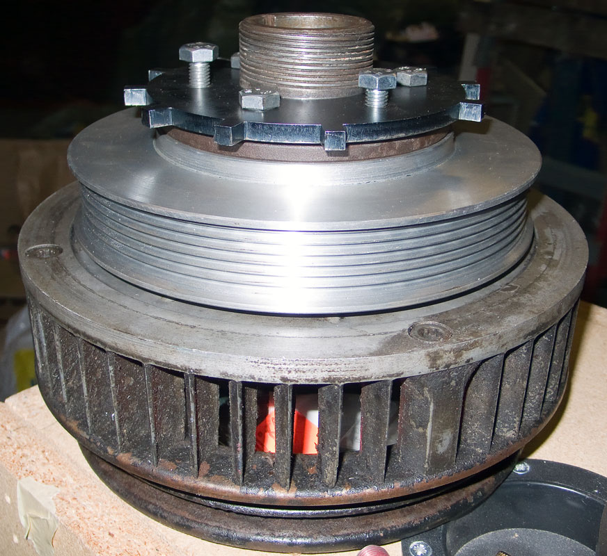 Special pulley set. The fan is from Type 4 engine. Shroud would be JMG-design.