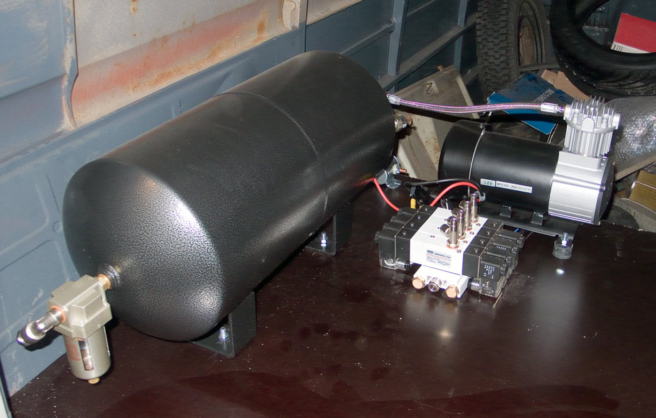 Kompuran ja säiliön sovitusta, vielä tarttis piuhoja ja letkua pikkasen, niin päästään napista suhisteleen.