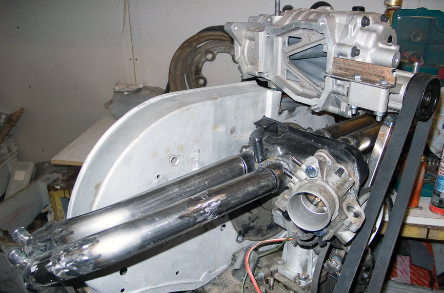 Here is plenum, which is from wasser engine. Added home made velocity stacks in plenum.